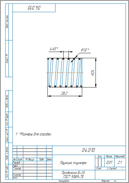 Рабочий чертеж и 3D модель детали пружина плунжера 14.010 из сборки 14.000 пневмораспределитель альбома по деталированию Аксарина. Чертеж и модель выполнены в программе Компас 3D