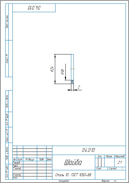 Рабочий чертеж и 3D модель детали шайба 04.010 из сборки 04.000 гидроцилиндр рабочий тормозной из сборника по деталированию Аксарина. Чертеж и модель выполнены в программе Компас 3D