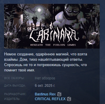 Ты — Каримара. Безмолвие и колдовство, мох и отражённый свет — вот твоя сущность. Всё, что ты можешь, так это снова и снова задавать вопросы. Блуждаешь по дому, скроенному из горя и загадок. Тебе не дано говорить, не дано заклинать или меч поднимать. Ты хватаешься за мёртвые остовы дома, заклинаешь вопросы из пыли, костей и забытого прошлого. Но будь осторожней, не забегай далеко — вдруг ты разбудишь, что спрятано глубоко.