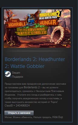 Представляем вам праздничное дополнение охотника за головами для Borderlands 2 – вы не успеете проголодаться, сражаясь с Ненасытным Плетневым Индюком. Утолите его голод и разберитесь с ним, чтобы получить вожделенную голову и костюмы, а также выслушать множество историй от Торга!