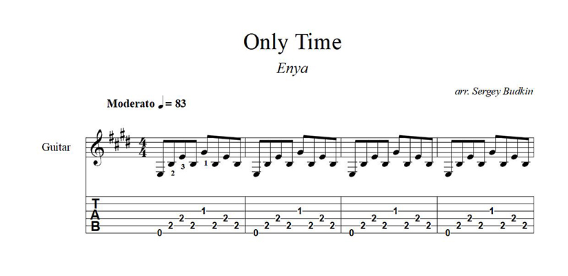 Аранжировка для гитары песни ирландской певицы Enya "Only Time".
