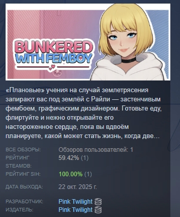 «Плановые» учения на случай землетрясения запирают вас под землёй с Райли — застенчивым фембоем, графическим дизайнером. Готовьте еду, флиртуйте и нежно открывайте его настороженное сердце, пока вы вдвоём планируете, какой может стать жизнь, когда дверь наконец-то откроется.