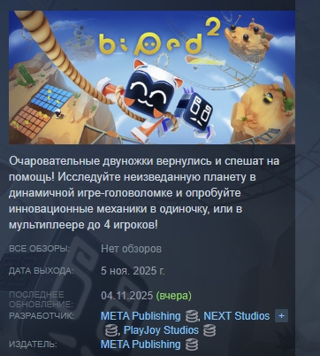 Очаровательные двуножки вернулись и спешат на помощь! Исследуйте неизведанную планету в динамичной игре-головоломке и опробуйте инновационные механики в одиночку, или в мультиплеере до 4 игроков!