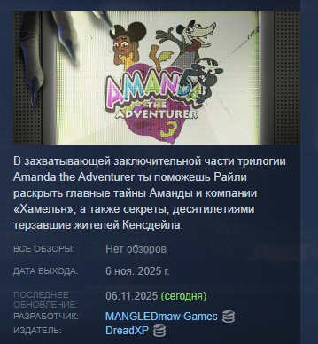 В захватывающей заключительной части трилогии Amanda the Adventurer ты поможешь Райли раскрыть главные тайны Аманды и компании «Хамельн», а также секреты, десятилетиями терзавшие жителей Кенсдейла.