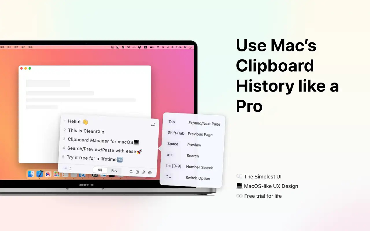 CleanClip бесшовно интегрируется с macOS, обеспечивая нативный, плавный пользовательский опыт. Это менеджер буфера обмена, который кажется, будто должен был быть встроен в ваш Mac с самого начала - прост в использовании, но невероятно мощный, когда вам это нужно.