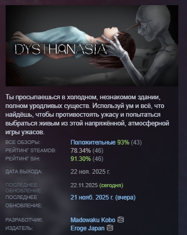 Ты просыпаешься в холодном, незнакомом здании, полном уродливых существ. Используй ум и всё, что найдёшь, чтобы противостоять ужасу и попытаться выбраться живым из этой напряжённой, атмосферной игры ужасов.
