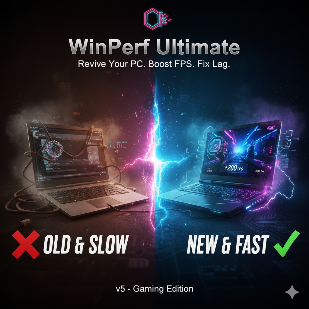 Встречайте WinPerf Ultimate v5. Легкое, безопасное и мощное решение, разработанное специально для недорогих ПК и старых ноутбуков. Мы не просто удаляем файлы cookie; мы оптимизируем ядро вашей операционной системы Windows, чтобы разблокировать скрытую производительность.