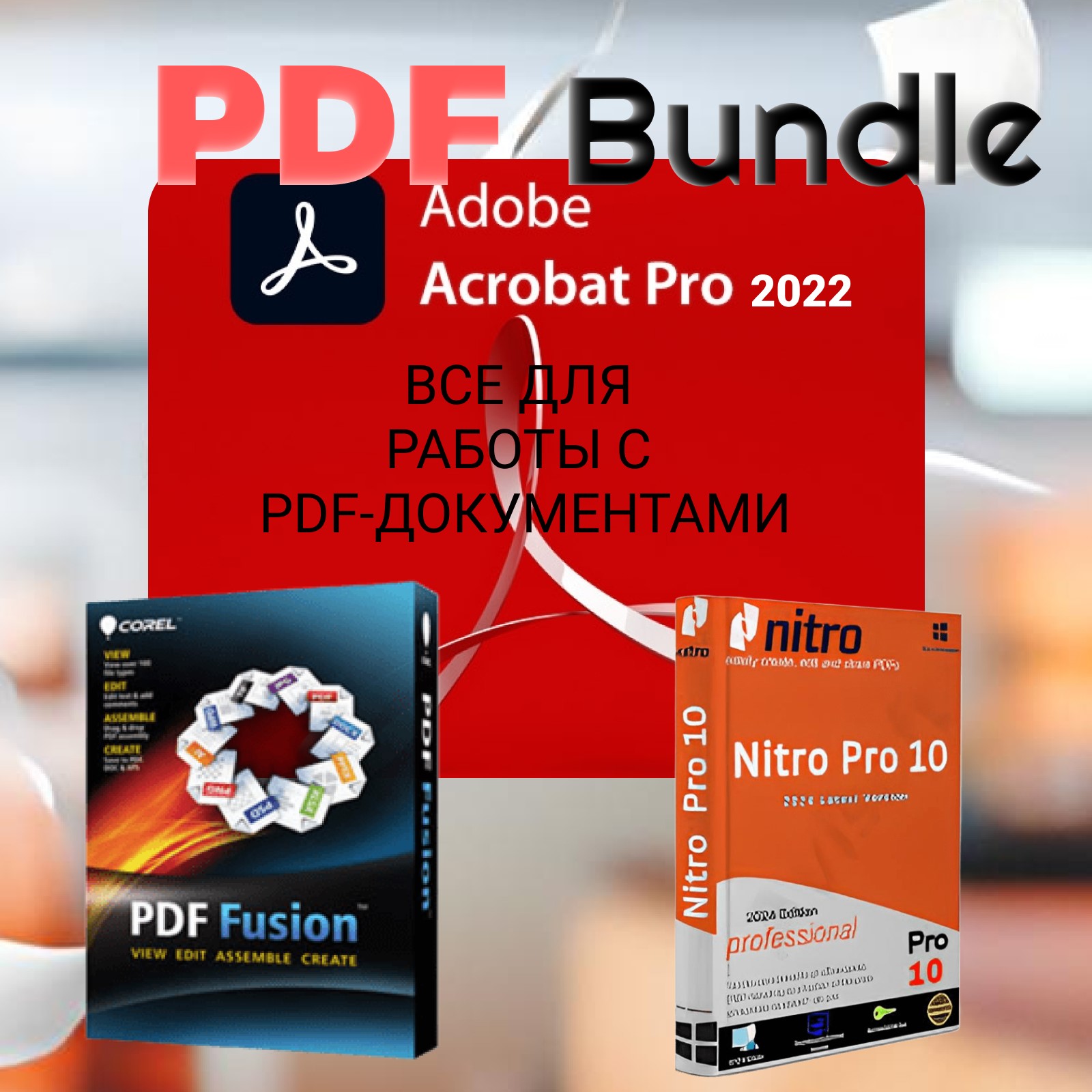 PDF Bundle 3 в 1 — Adobe Acrobat Pro DC 2022 + Corel PDF Fusion + Nitro PDF Pro 10
