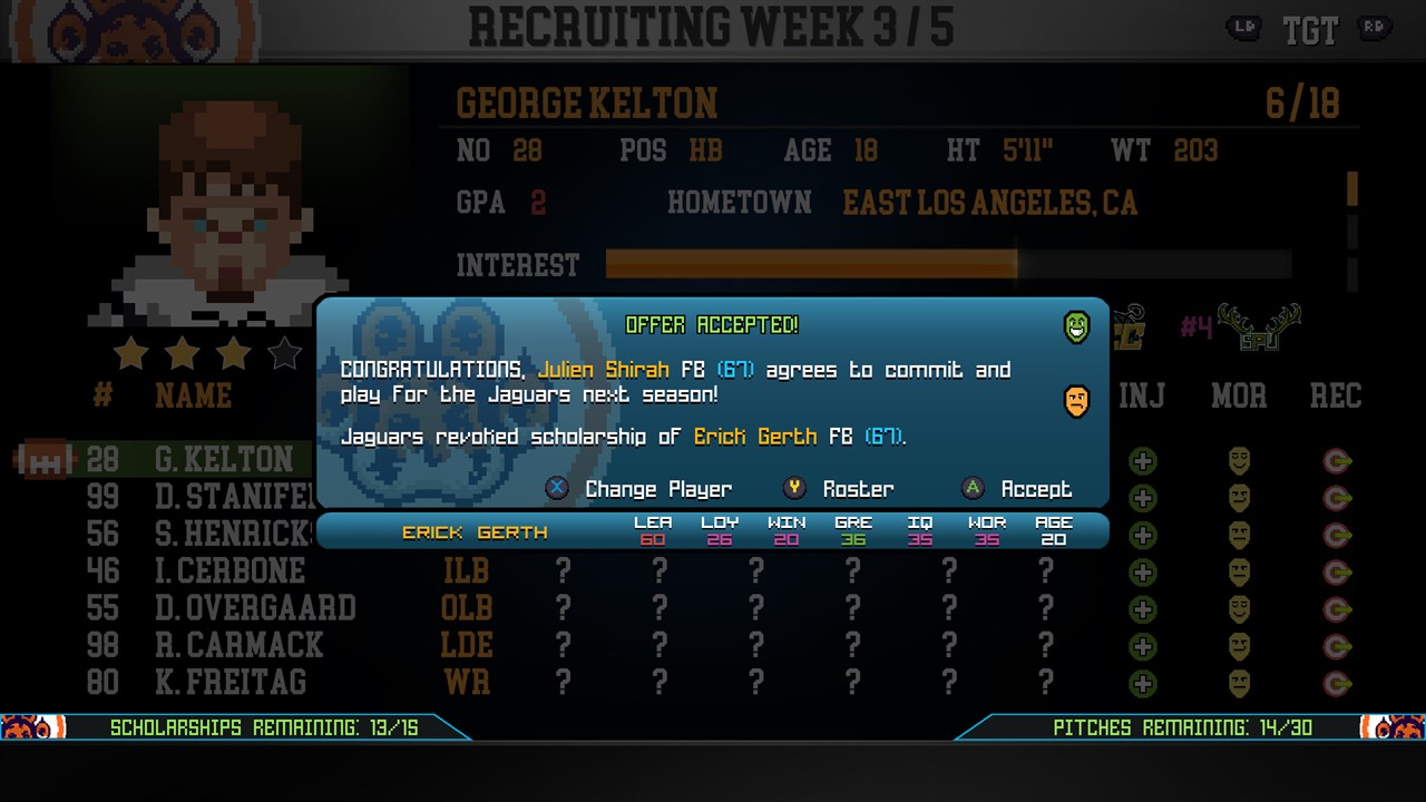 Dive into the world of College football where the path to success is anyone´s game! College Bowl allows you to build your program into a powerhouse where you´ll be met with coaching goals, disciplinary decisions, transfer portal, and scouting & recruiting challenges along the way!