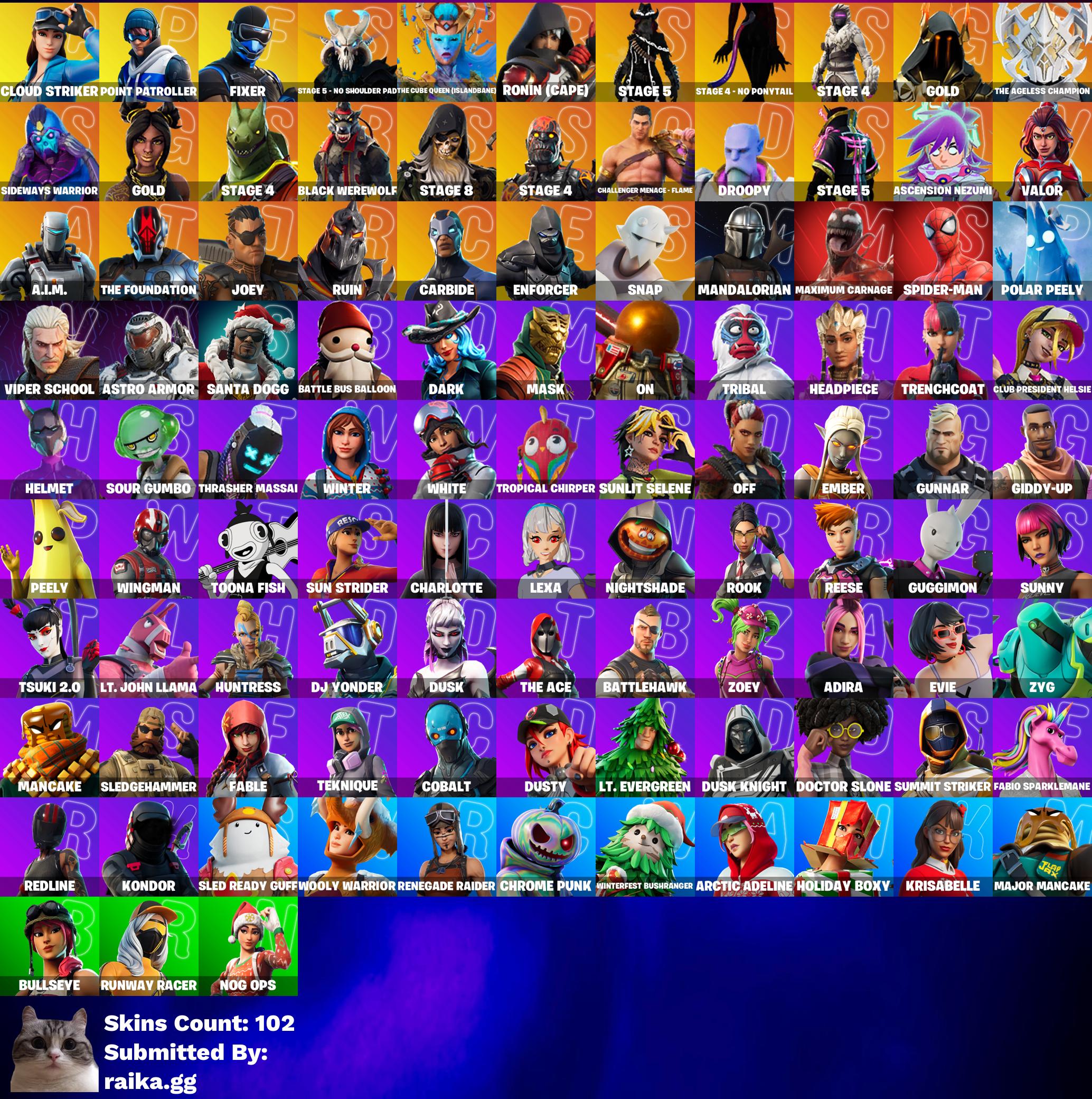 • После покупки вы получаете аккаунт Fortnite со 102 скинами (возможно наличие купленного PVE-режима). Данные игры + данные почты. Аккаунт будет с задержкой для смены почты.