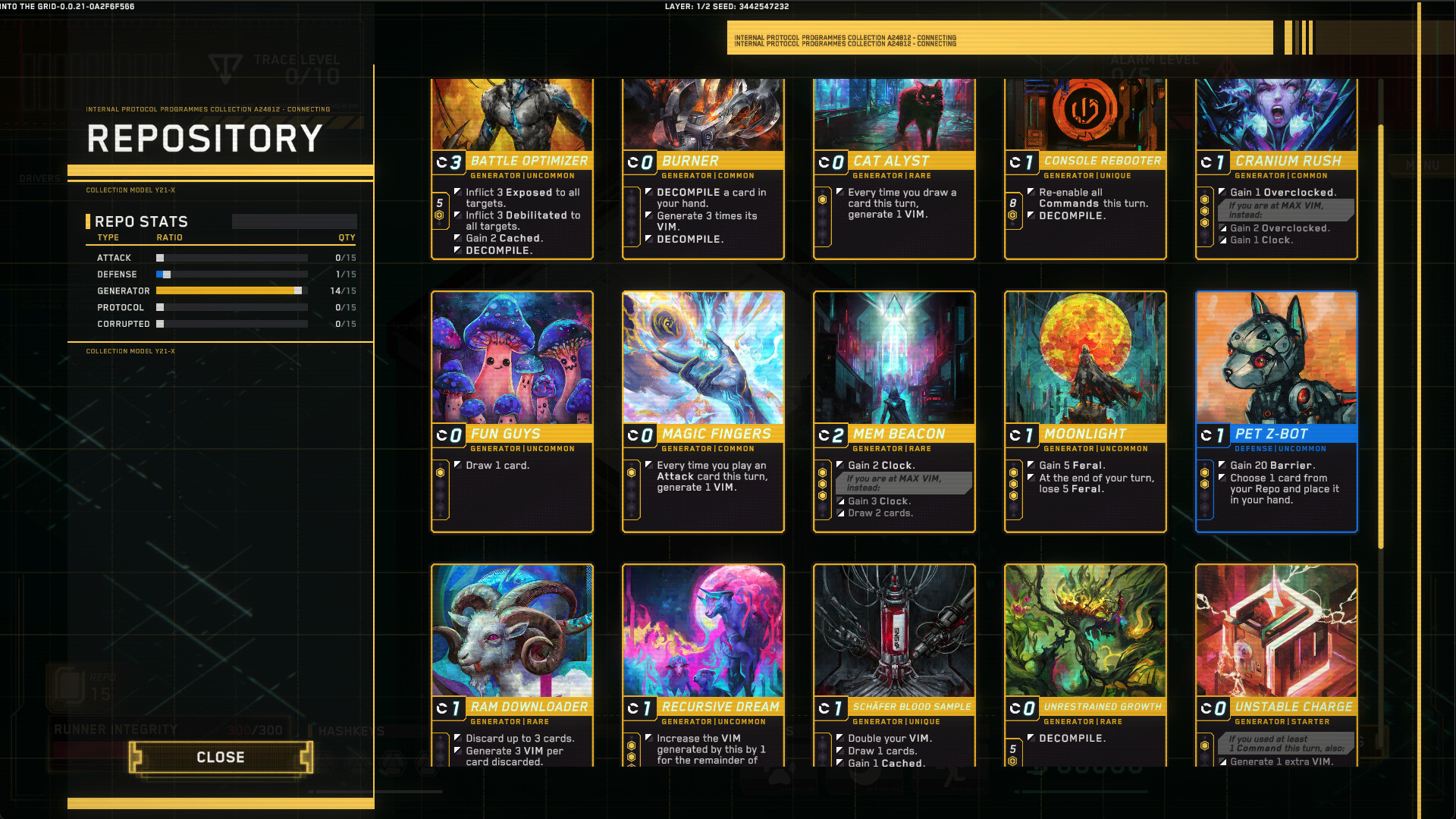 Станьте хакером в этом Карточном рогалике в стиле Киберпанк. Исследуйте киберпространство, сражайтесь с корпорациями, создавайте и улучшайте свою колоду программ. Открывайте бонусы и навыки, и сокрушите цифровых врагов. Добро пожаловать в Into The Grid!