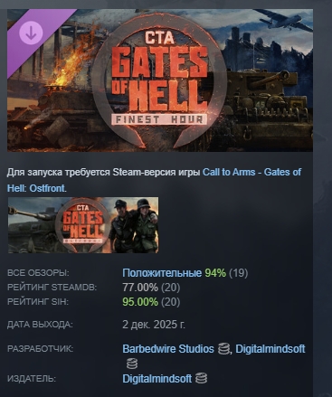 Для запуска требуется Steam-версия игры Call to Arms - Gates of Hell: Ostfront.