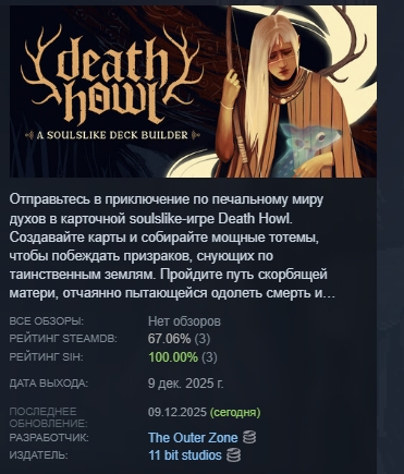 Отправьтесь в приключение по печальному миру духов в карточной soulslike-игре Death Howl. Создавайте карты и собирайте мощные тотемы, чтобы побеждать призраков, снующих по таинственным землям. Пройдите путь скорбящей матери, отчаянно пытающейся одолеть смерть и вернуть сына.