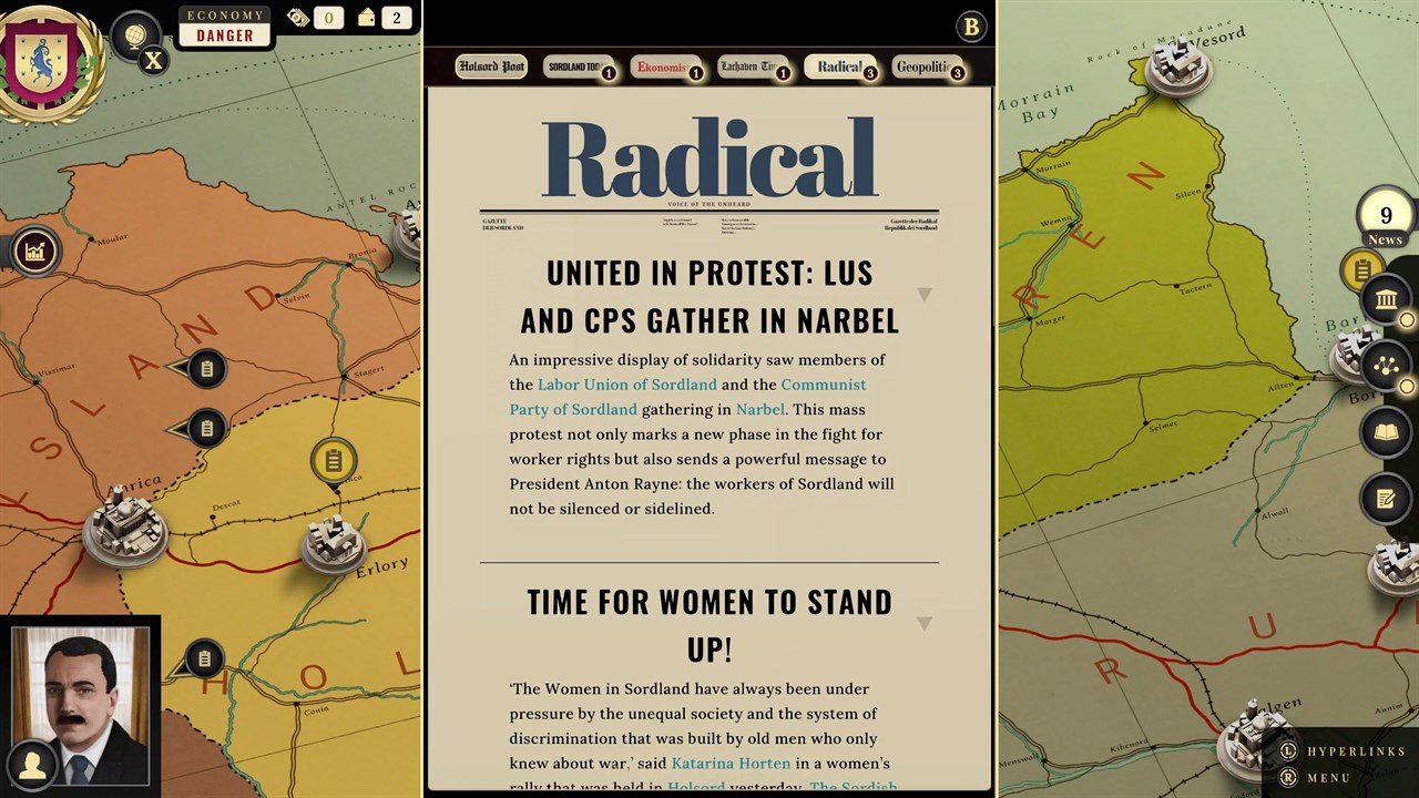 Отправьтесь в захватывающую историю в роли президента Антона Рейна, ведя Сордланд в переломный момент. Столкнитесь с потенциальными пограничными конфликтами, глубоко укоренившейся коррупцией и экономическими потрясениями, лавируя в сложной политической динамике первого срока Антона. Как лидер, ваши решения определят судьбу Сордланда. Как вы будете руководить?