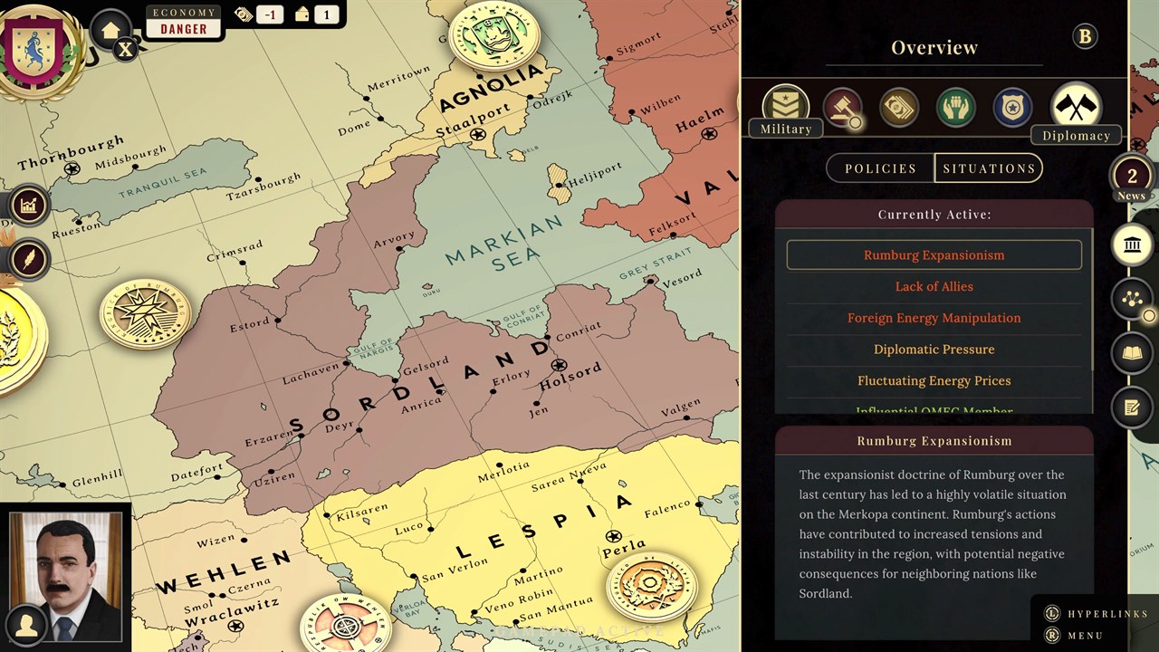 В роли президента Рейн возглавьте Сордланд в свой первый срок в этой текстовой ролевой игре. Разберитесь в политической драме, основанной на диалогах с членами кабинета министров. Надвигающаяся война, укоренившаяся коррупция, экономический кризис и необходимость реформ — выбор ложится на ваши плечи. Как вы будете руководить?