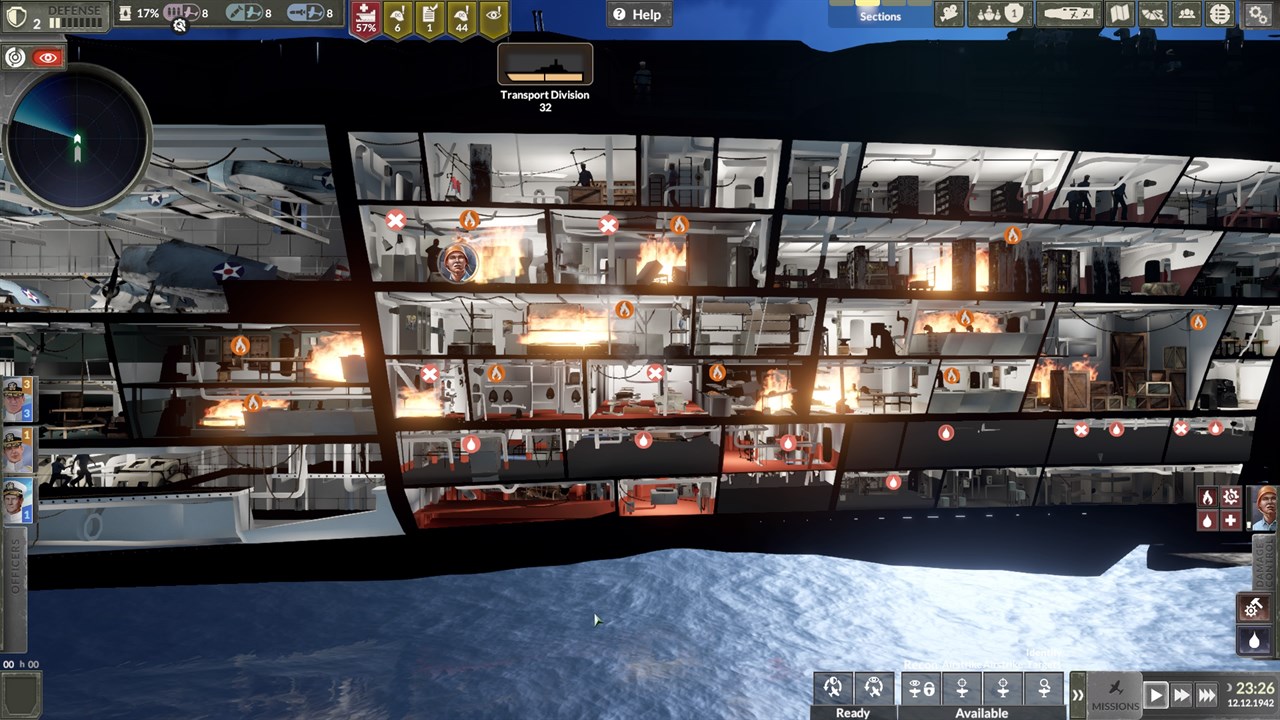 Аварийные команды способны справиться с пожарами, ударами торпед, пробоинами в корпусе, вражескими бомбардировками и авианалетами, в том числе, самолетами-камикадзе — но не со всем этим одновременно. Чтобы выжить, определяйте наиболее приоритетные угрозы.