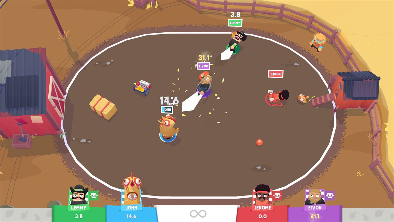 На каждой арене – свои правила и непредсказуемые мини-игры! Вас ждут не только классические матчи, в которых побеждает лишь один игрок, и командные баталии, но и безумные соревнования – попробуйте побрить овцу газонокосилкой!