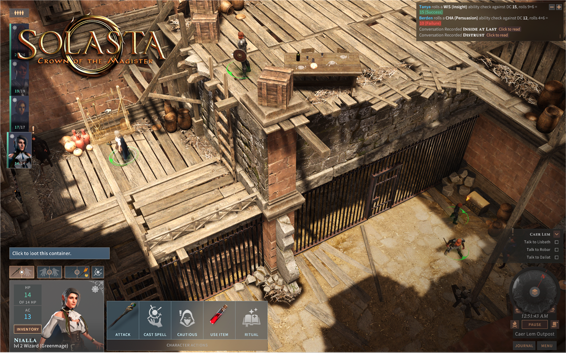 Игру Solasta: Crown of the Magister создали горячие поклонники настольных ролевых игр, игравшие в них долгие годы. Бросайте инициативу, делайте внеочередные атаки, следите за тем, где герои стоят на поле боя и не забывайте, что позиция на возвышенности дает преимущество. Будьте готовы к беспощадным ударам и внезапным 20, выпадающим в самые напряженные минуты сражений.