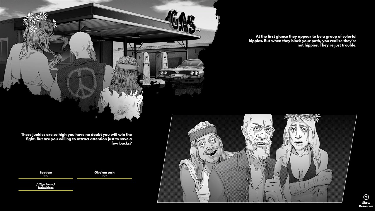 Прокладывай маршрут по динамической карте, где каждый путь — это новый выбор. Управляй ресурсами: топливом, состоянием машины и вниманием, решая, помогать ли незнакомцам, участвовать в уличных гонках или убегать от закона. Выборы влияют на репутацию, уровень розыска и развитие сюжета.