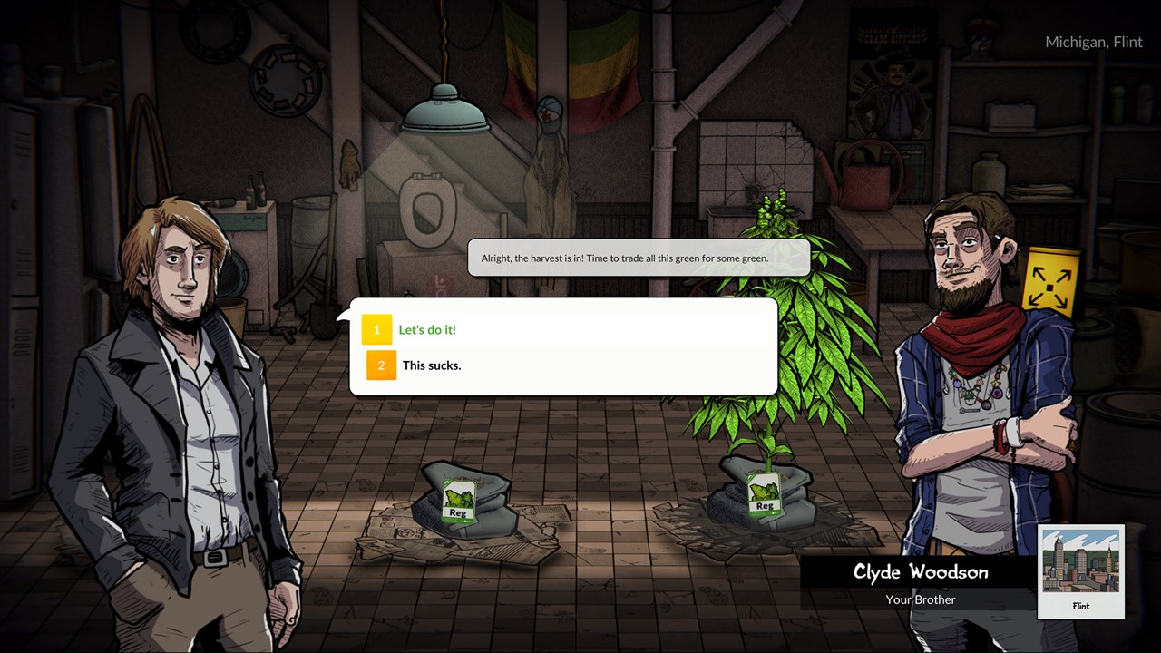 Будущим травяным магнатам предстоит обстоятельно распределять ресурсы, управляя производством и распространением своего продукта. Выращивайте убойные кусты, скрещивайте их, чтобы создать уникальные сорта салатика дьявола, нанимайте и управляйте персоналом, и будьте готовы к уверенной конкуренции. Как и в реальной жизни, этот бизнес предлагает массу возможностей, но всегда сопряжён с немалым количеством проблем. Решайте, где и когда стоит лишний раз рискнуть, чтобы довести прибыль до максимума, но будьте осторожны — бдительные копы и политики косяки не пинают.