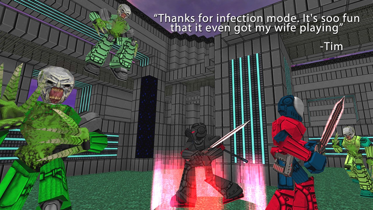 The #1 rated Xbox Live Indie Game is back in 60 FPS with a new Battle Royale mode, new weapons, and much more! Halo-inspired. Destructible/constructible environments. Vehicles. Zombie survival. Hookshots. Infection mode: Be the zombie & eat the dead to level up your zombie abilities.