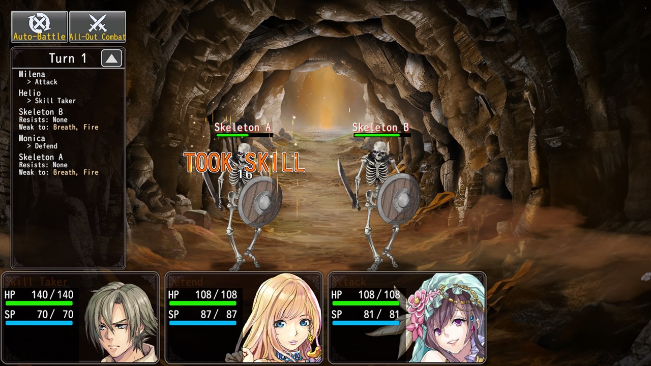 Engage in strategic, turn-based combat with a front-view command system that emphasizes exploiting enemy weaknesses in a fantasy RPG with beautiful pixel and anime-styled characters. As Helio, use the unique "Skill Taker" ability to steal and equip powerful skills from defeated foes, giving you the freedom to build and customize your arsenal. Master the art of anticipating enemy moves, unleashing devastating counterattacks, and outmaneuvering even the fiercest opponents. With each battle, you´ll grow stronger and unlock new strategies, guiding Helio from a simple villager to a key player in the fight for the world´s survival.