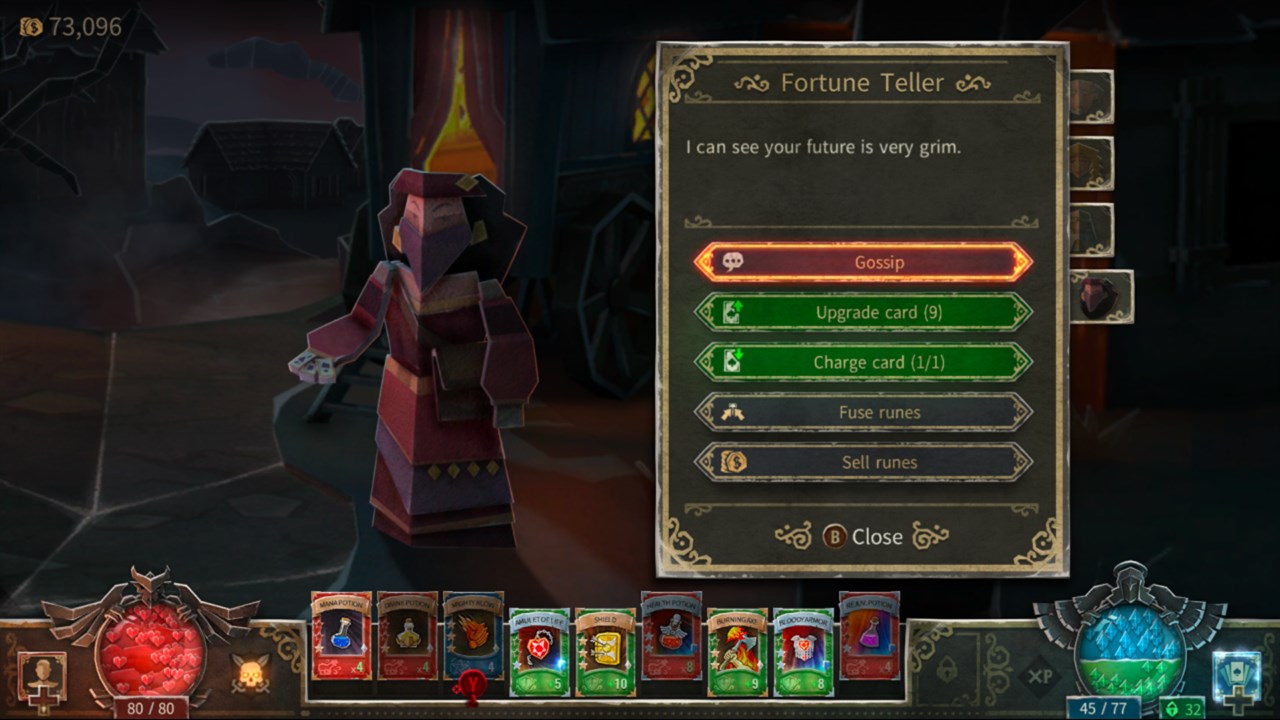 Карты и построение колоды: это не карточная игра, но все в ней, от предметов и заклинаний до навыков, представлено в виде карт. Путь к победе — подстроить свои карты к каждой ситуации. Улучшайте карты с помощью рун, а еще можно найти множество вариантов с разными бонусами. Легендарные карты лучше всех, но добыть их непросто."