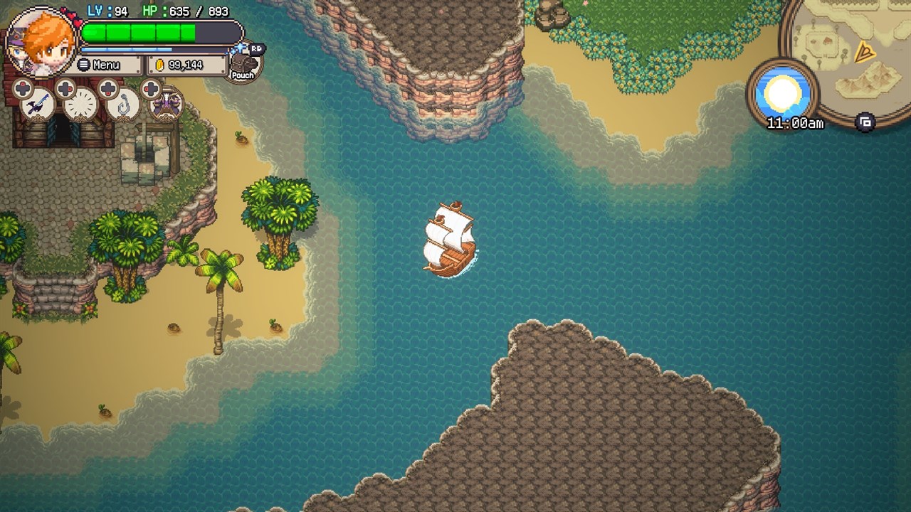 Players can freely get on and off the ship and explore the vast pixel world.