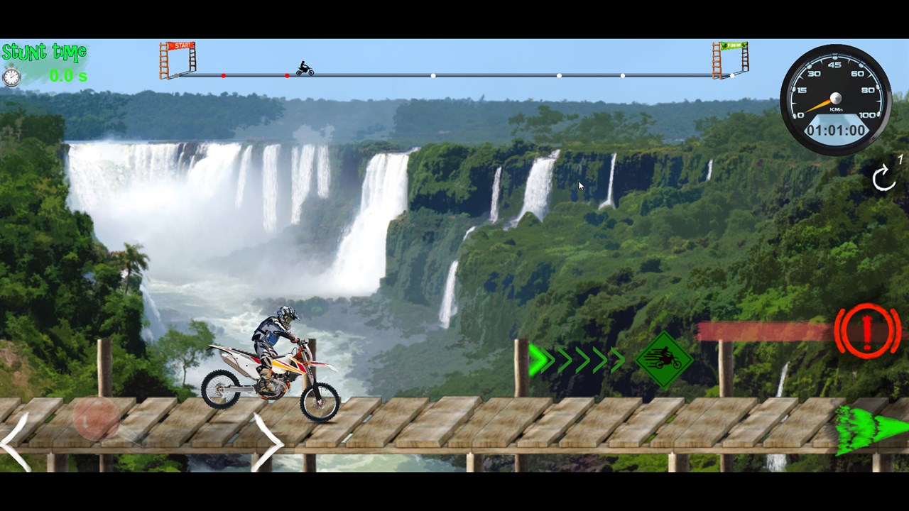 Enduro bikes are heavy, and controlling tilt is sometimes hard. They don´t brake much either, so you need to plan your speed carefully. The game includes speed signs to give you tips about when you can drive fast, or when you should drive slowly.