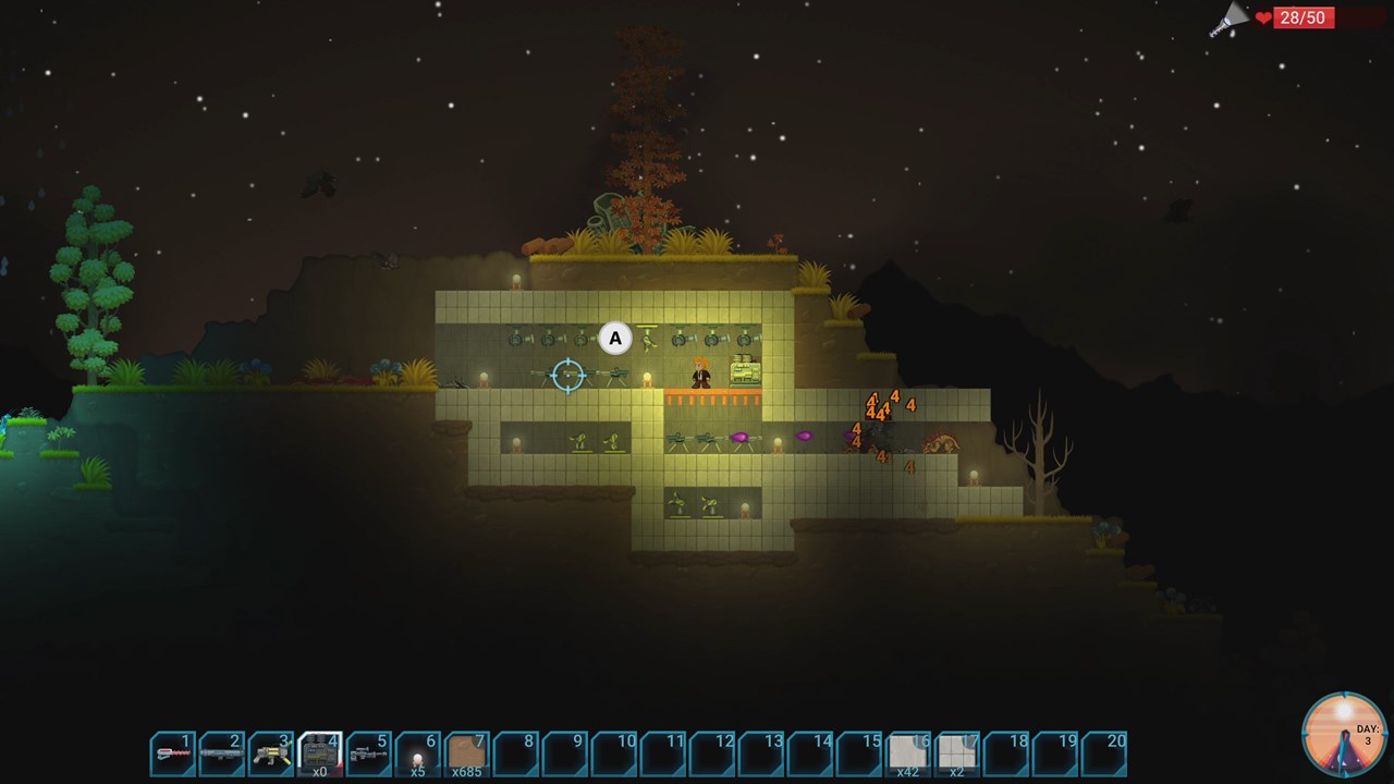 - Нарастающая сложность: только те виды, представители которых были убиты Вами в течении дня - будут атаковать ночью (должно быть это месть!). Так что, Вы можете развиваться в своем собственном темпе и выбирать, когда будете готовы продвигаться вперед и сражаться с более сильными монстрами.