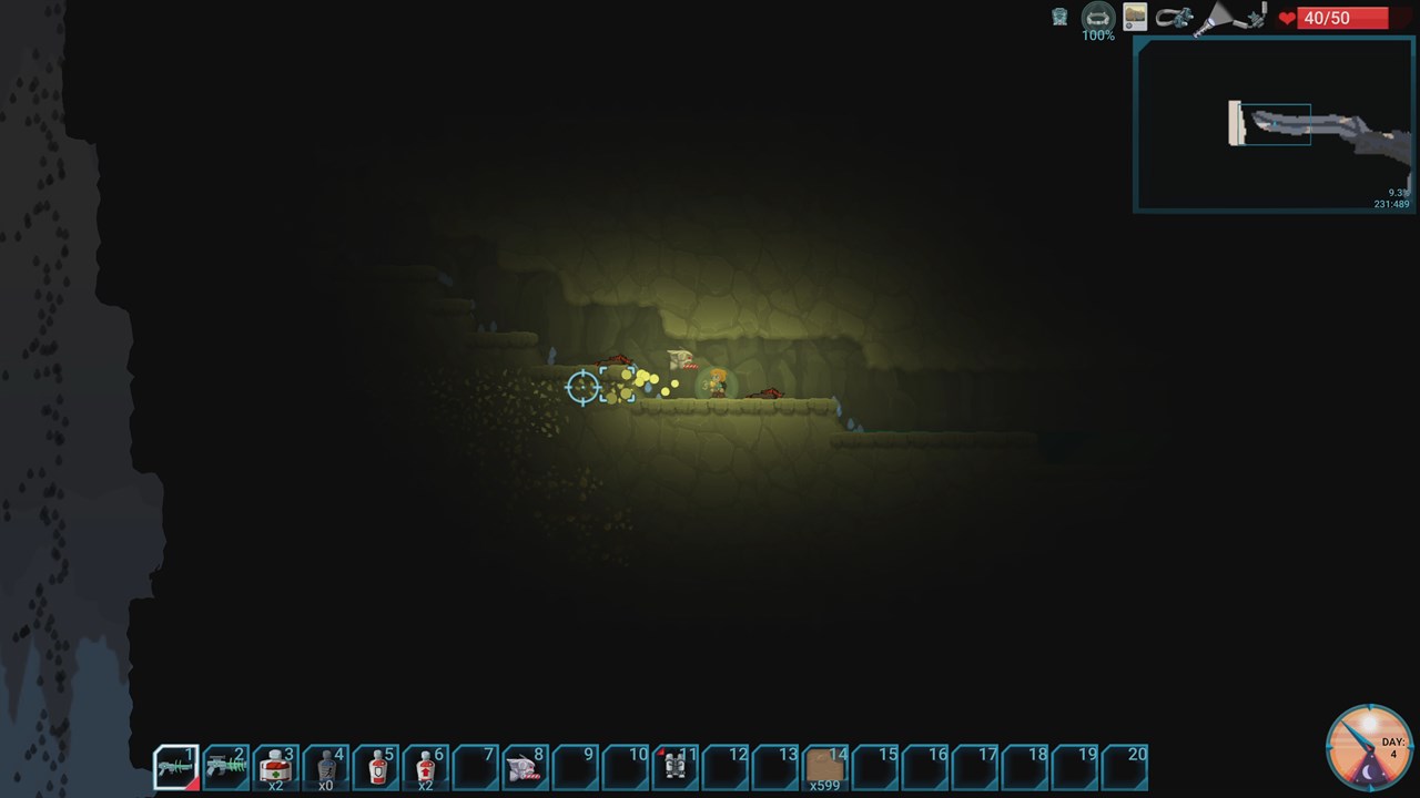 - Процедурная генерация мира: Общее местонахождение зон, ключевых для прогресса игры, фиксировано. Но конкретное расположение поверхности, пещер, ископаемых и т.д., является уникальным при каждом прохождении.