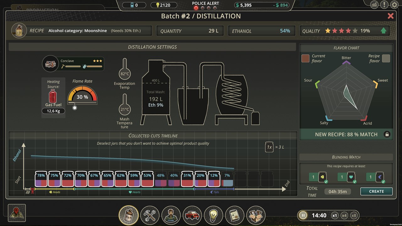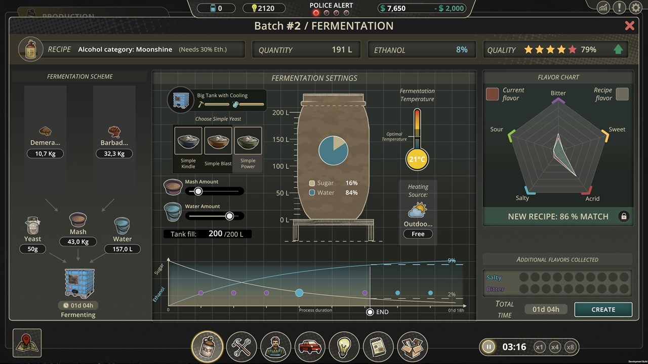 Мы постарались как можно более реалистично отобразить жизнь самогонщика. Вы будете управлять рабочими, которые будут создавать и обслуживать ваше оборудование, вы будете покупать ингредиенты, открывать технологии, планировать поставки и финансы, следить за тем, чтобы оставаться как можно более незаметным - и решать, кому доверять и с кем работать.