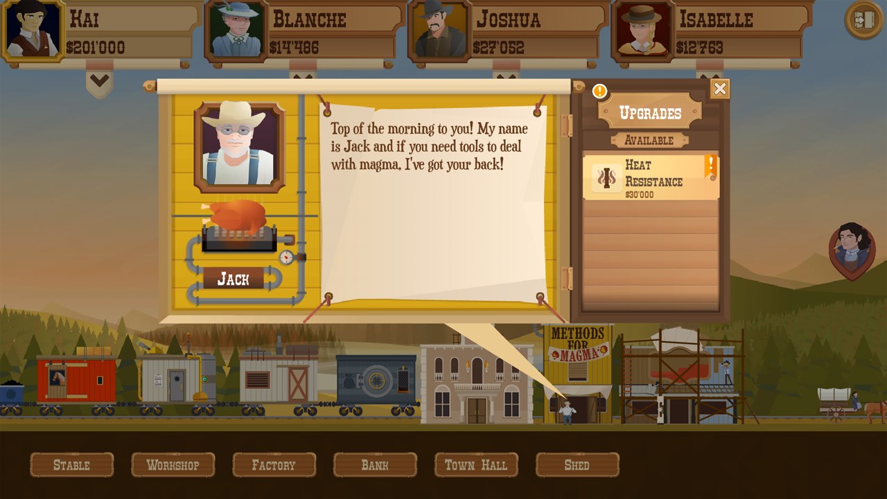 * Вы увидите знакомые лица, в частности, Эдварда, Фреда и Уильяма. Они привезли свои товары в вагонах поездов, поэтому вы можете мгновенно получить все ваше любимое оборудование для бурения.