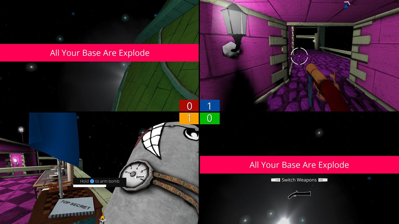 Screencheat — смешная стрелялка от первого лица, где все игроки невидимые, а экран разделён. Поэтому, чтобы сражаться друг с другом, игроки должны смотреть на экраны соперников (Screencheat — гл., подглядывать на экраны соперников. "Прекрати скринчитить, читер!"). В игре вам предстоит освоить множество видов оружия, убивающего с одного удара, например, мушкетон, стреляющий плазменными шарами автомобильный двигатель или начинённый взрывчаткой плюшевый медведь. Научитесь играть в одиночных забегах на время, а затем переходите к отчаянным битвам с другими игроками по локальной сети или через интернет. Одновременно играть могут до 8-ми игроков. В игре Screencheat яркие карты, уникальные режимы и множество настроек, включая классные модификаторы — словом, это непревзойдённая стрелялка для вечеринок!