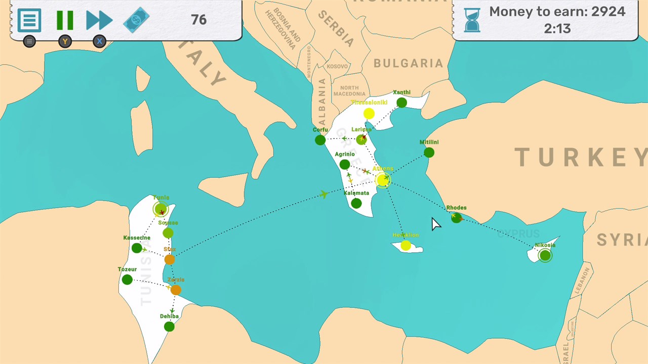 Открывайте новые маршруты между регионами и городами, покупайте и модернизируйте самолеты, увеличивайте возможности аэропортов по мере роста вашей сети.