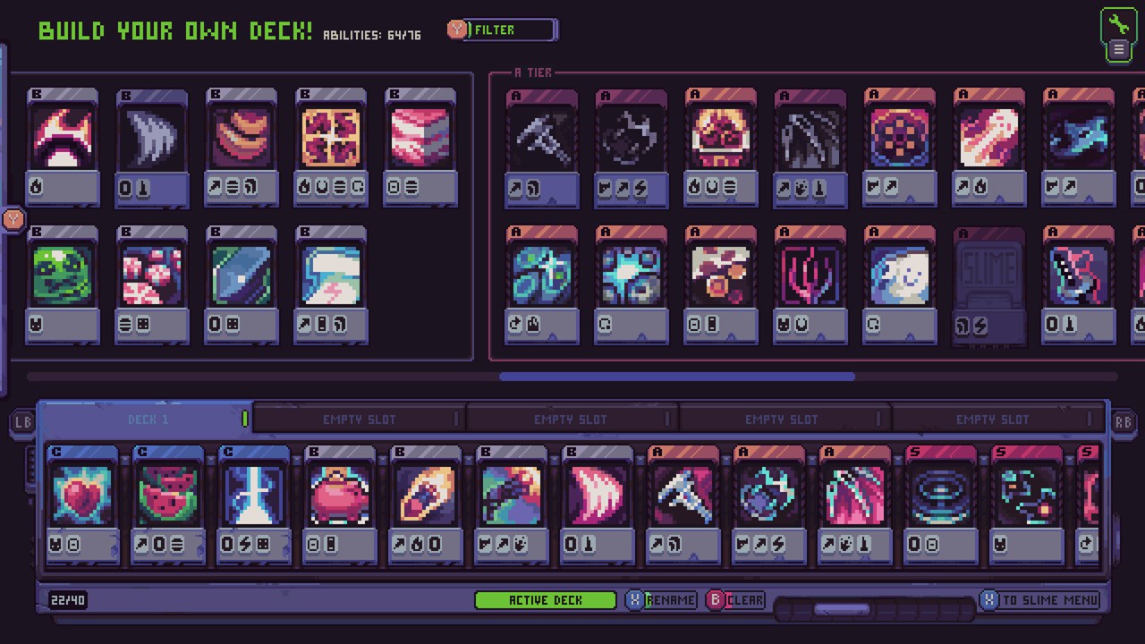 В Slime 3K в стандартную формулу survivor-like мы постарались добавить больше стратегической глубины и возможность экспериментировать. Разблокируйте, улучшайте и сочетайте разные карточки, чтобы собрать свой уникальный арсенал безумных орудий. Вы сами выбираете, какие способности будут доступны в каждом отдельном сражении!