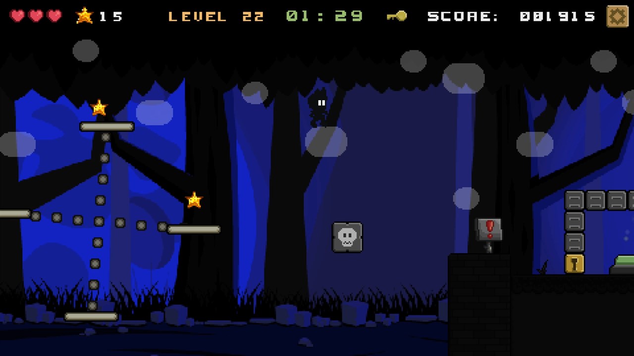 Guide our brave shadow hero across mysterious valleys in search of the hidden key that unlocks the portal. Watch out for deadly traps overhead, spikes beneath your feet, and treacherous cliffs at every turn! Leap onto enemies to destroy them, but be careful not to lose your footing.