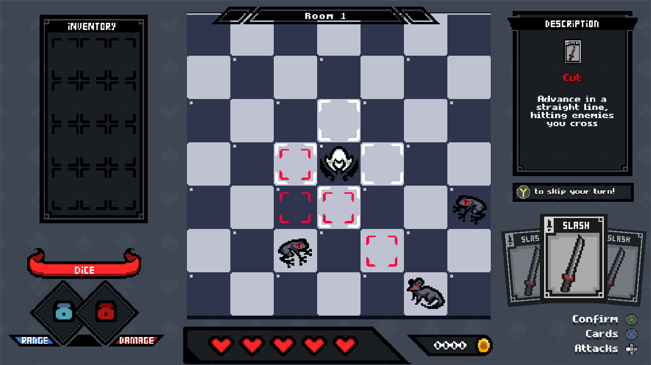 Положение на доске существенно для победы, так как вам нужно стратегически двигаться, чтобы встретить врагов на правильных клетках. Движение на доске напоминает классические настольные игры, добавляя дополнительный уровень сложности к боям.
