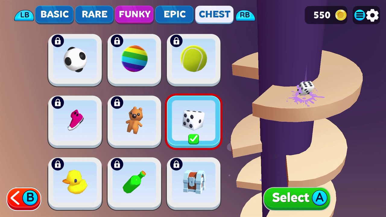 Ваш шарик падает, как кирпич, через разноцветные спиралевидные платформы, которые блокируют его падение, но если вы заденете красную точку, все будет кончено! Ваш шар разлетается на кусочки, и вам придется начинать падение заново.