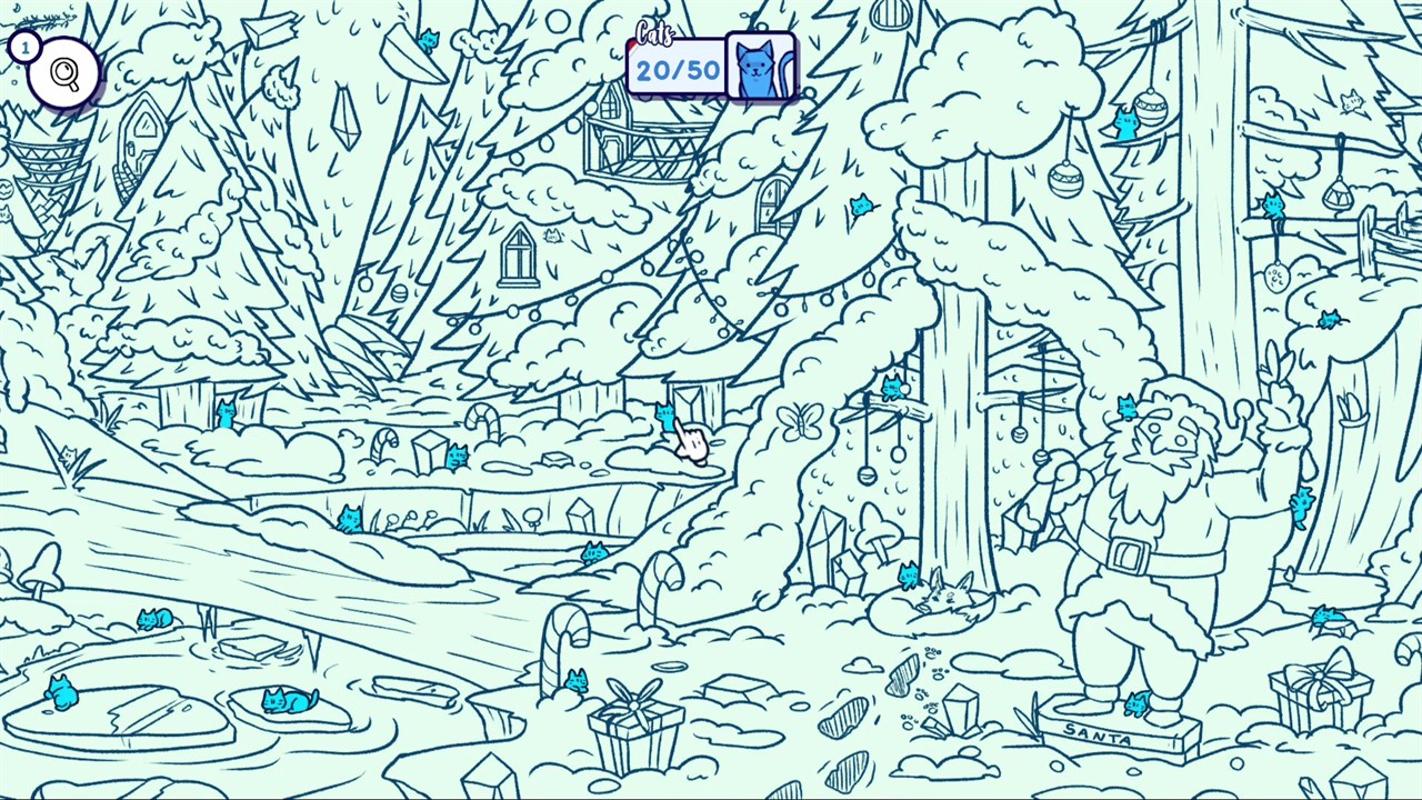 Заходите на праздник и найдите всех котиков, спрятанных среди эльфов, чтобы раскрасить город!