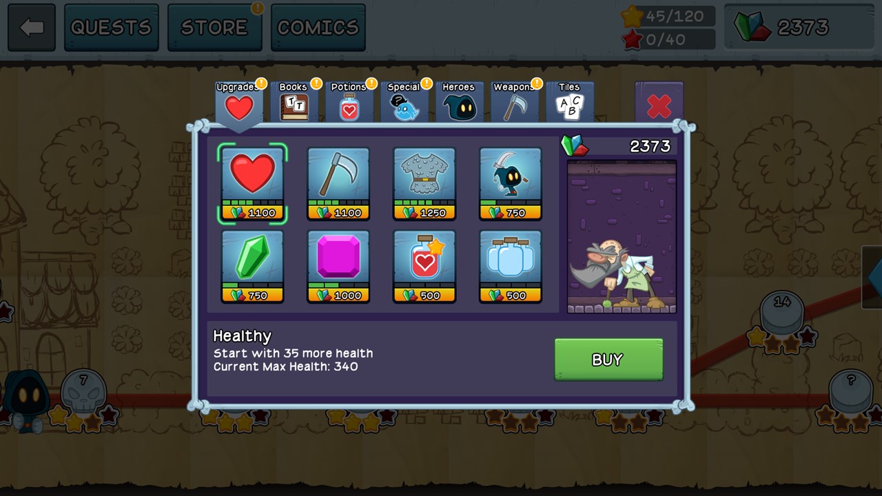 Spell words to battle monsters and earn gems that can be used to purchase upgrades, books, special items, potions, and much more! Letter Quest is a turn-based RPG featuring high-res artwork, clever wordplay, and two great soundtracks. Use your linguistic skills to survive!