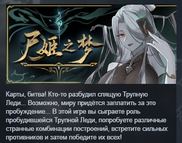 Карты, битва! Кто-то разбудил спящую Трупную Леди... Возможно, миру придётся заплатить за это пробуждение... В этой игре вы сыграете роль пробудившейся Трупной Леди, попробуете различные странные комбинации построений, встретите сильных противников и затем победите их всех!