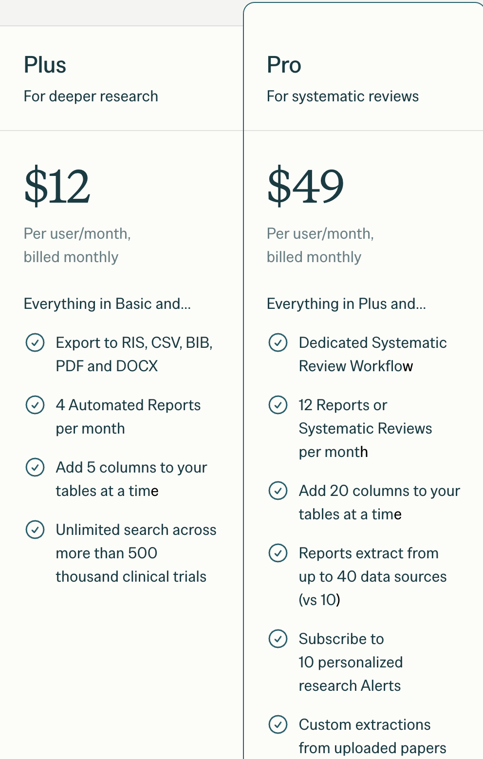 • PRO: Все функции Plus + 12 систематических обзоров, 20 столбцов данных, извлечение из 40 источников.