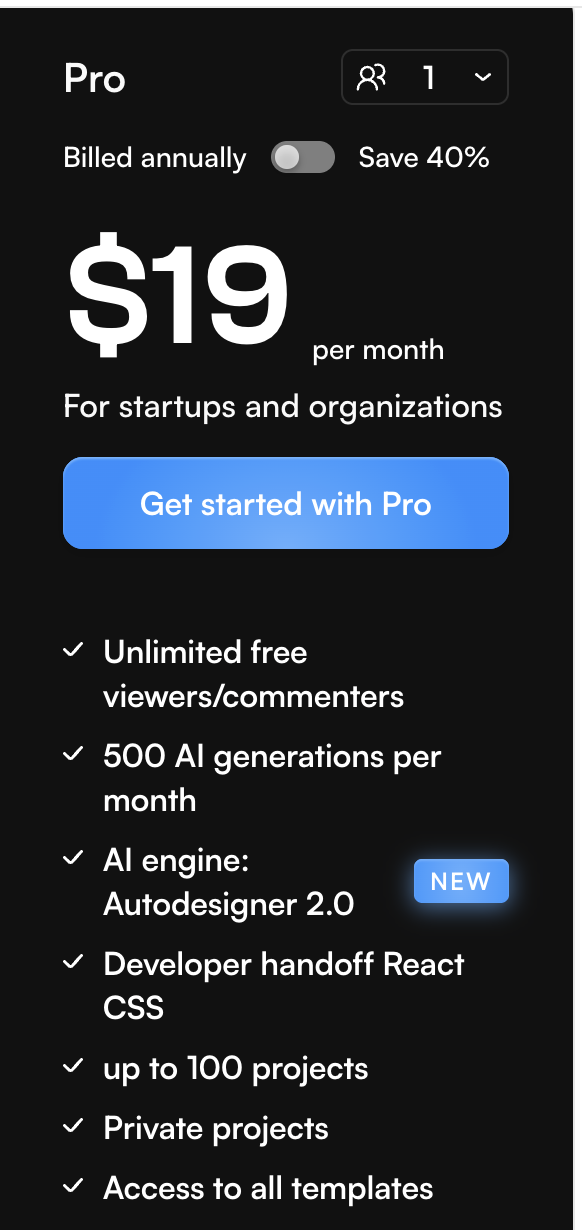 Uizard — это революционный инструмент на базе ИИ для UI/UX дизайна. Мы предоставляем НОВЫЙ ПРИВАТНЫЙ аккаунт с активной подпиской Pro. Это ваш личный аккаунт, НЕ общий.