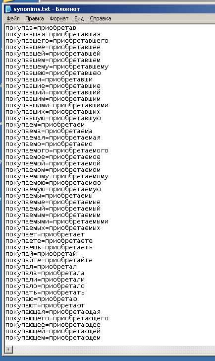 Отличная база русских синонимов, содержит 157989 слов/71027 строк. База составлена в ручную и содержит только однозначные синонимы. Ряды синонимов представлены во всех словоформах. Формат базы – текстовый файл. Отлично подходит для синонимайзеров. Хорошая читабельность текста на выходе. Выгодная цена. Экономит Ваше время.
