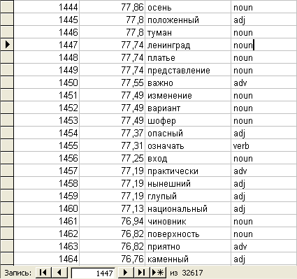 Частотный словарь русского языка содержит 32617 слов (лексем) и представлен в понятном и удобном формате MS Access (расширение .mdb). И этот словарь (FrDict32617.mdb) помещен в архив RAR (FrDict32617.rar), этот архив Вы и получите при покупке. Архив, естественно, незапароленный.