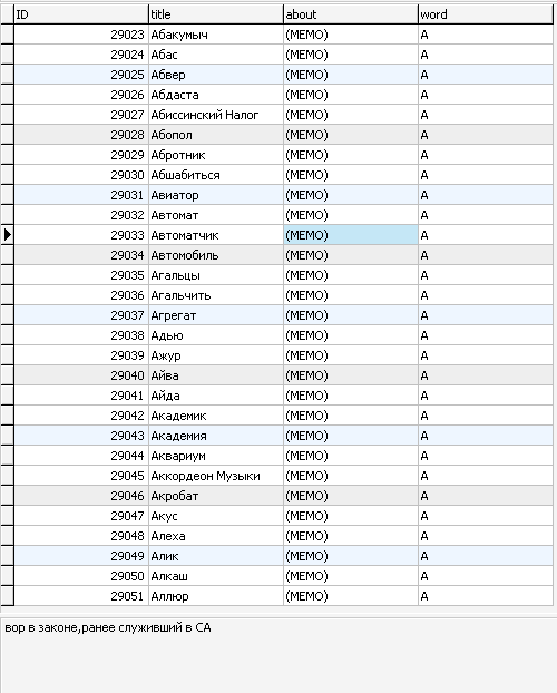 База данных "Словарь воровского жаргона", содержит в себе перевод 7209 жаргонизмов.