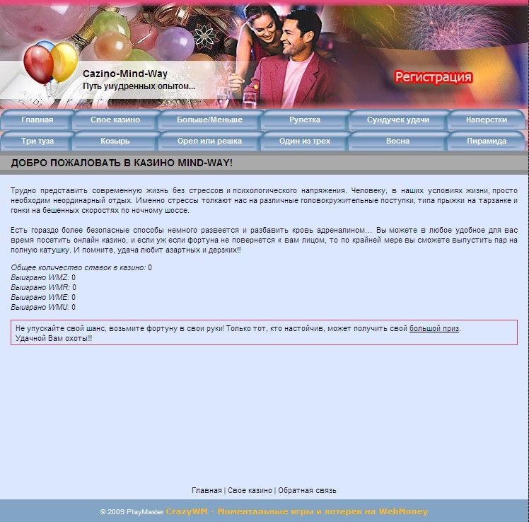 Шаблон и скрипт для создания партнерского сайта онлайн-казино. Отсутствие каких либо денежных вложений, мощная партнерская поддержка с 50% выплатой и рефсистемой плюс предельная простота скрипта, современные технологии написания и защита от взлома,