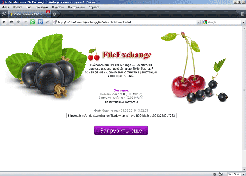 На правом изображении файлообменника показана форма загрузки файлов, после загрузки файлов появляется страница с ссылкой на скачивание файла (показано в среднем скриншоте) и при скачивании файла с сервера используется страница, показанная на третьем скрине.