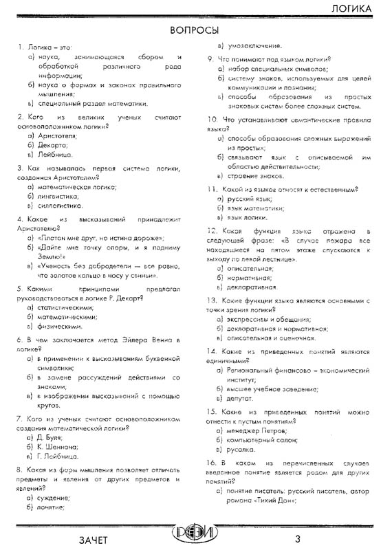 Зачет "ЛОГИКА" Региональный финансово - экономический институт.